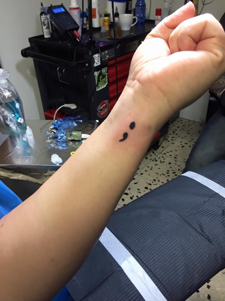 “ Yes, it is a semi colon. Yes I did tattoo it on my hand. I did it to stand in solidarity with those who battle mental health issues. That when you could of ended your story you chose to continue.”