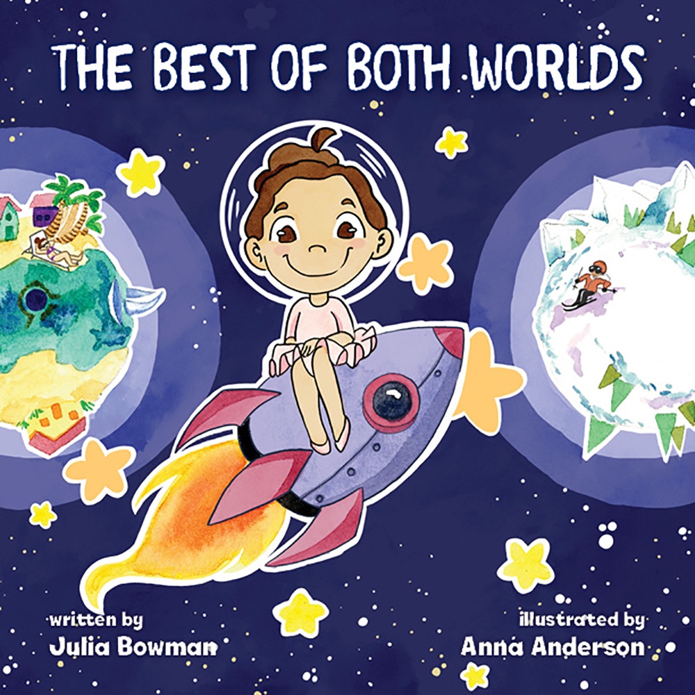 The Best of Both Worlds is the space adventures of a tutu wearing little girl, Layla, that serves to help parents explain to their children the concept of separation and divorce.